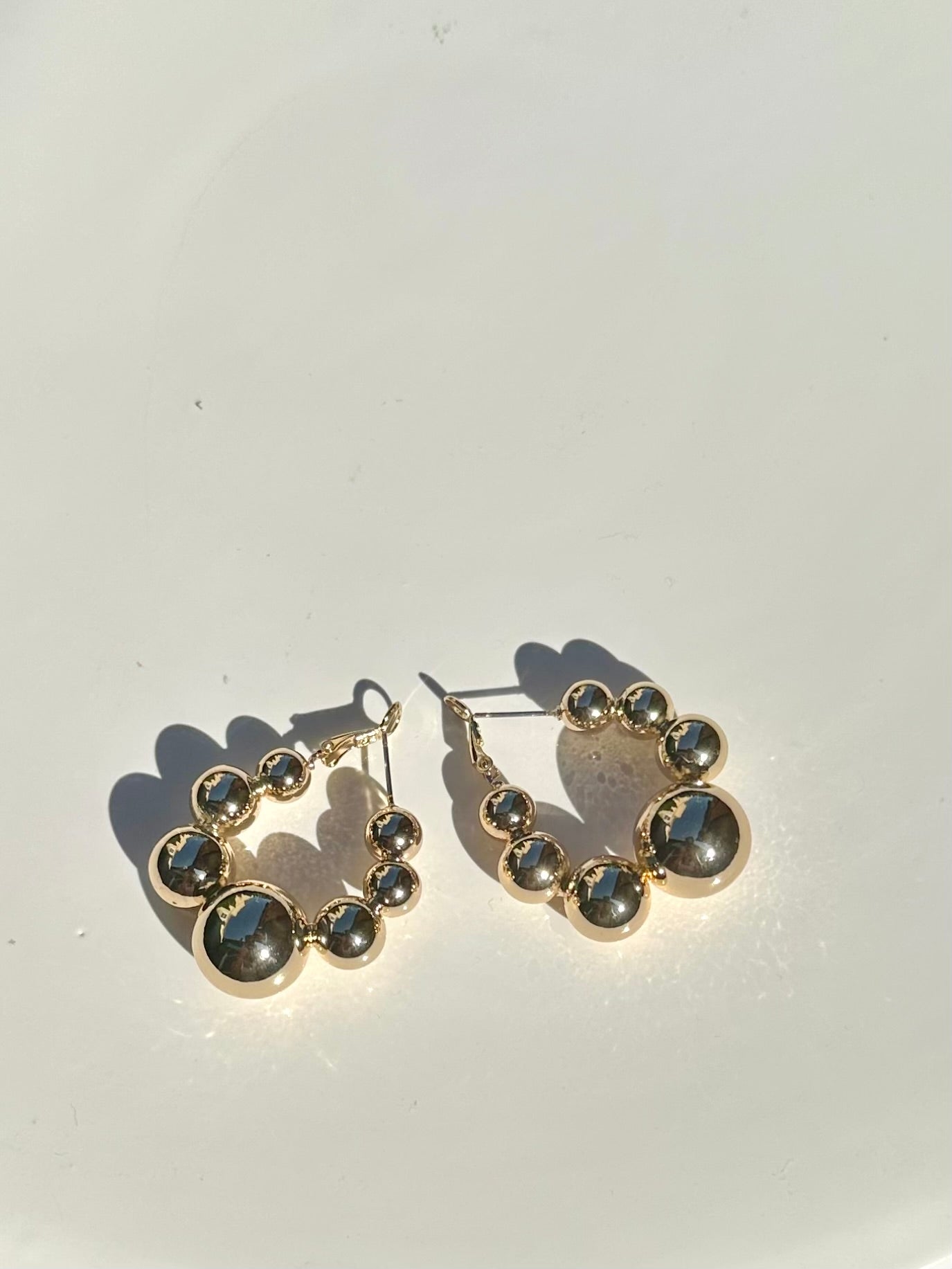 Make a bold statement with our lightweight, large ball hoop earrings in radiant gold. Designed for all-day comfort and eye-catching style, these hoops add a touch of glamour to any outfit.